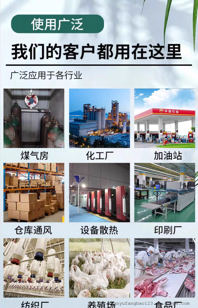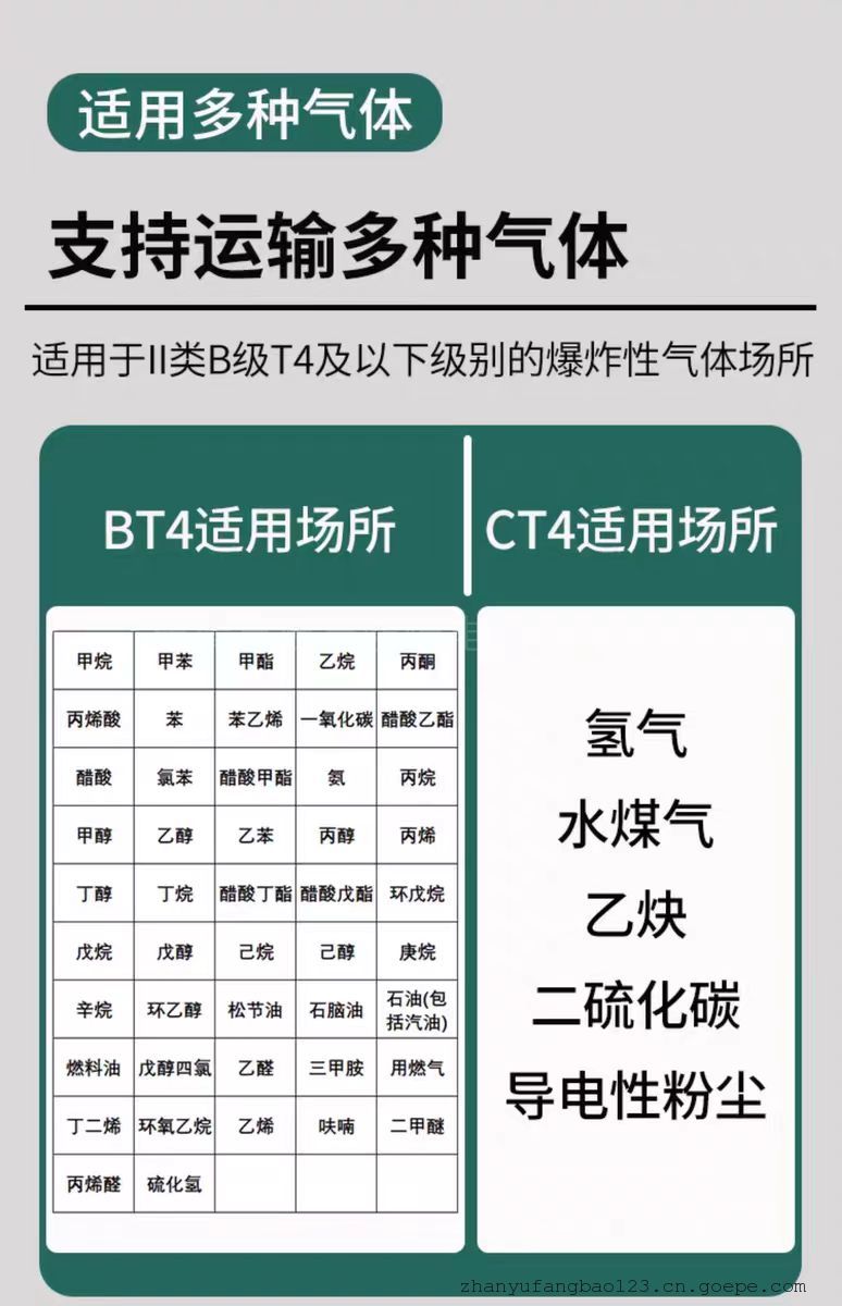 ----防爆型:非腐蚀含有易燃、易爆气体(含尘量不超过100mg/m3)。