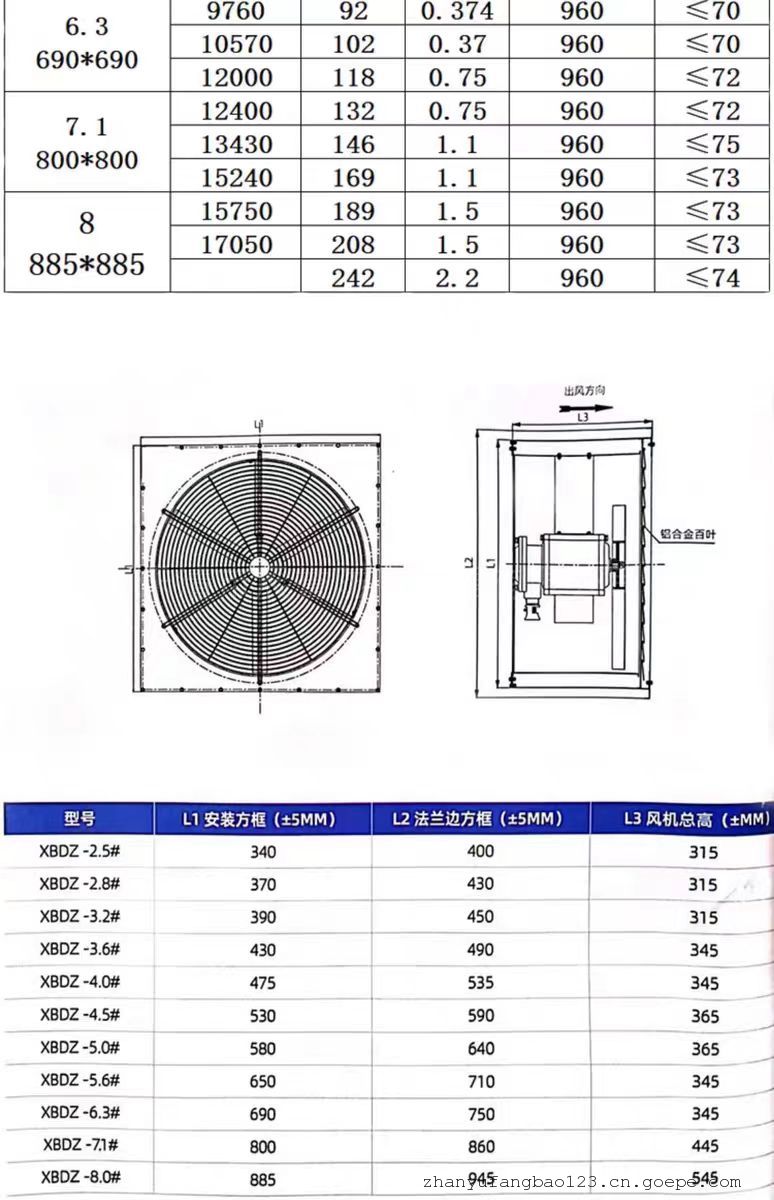 3、工作电源:三相、380V/50Hz(小功率风机可做成单相220V,请订货时注明)。
